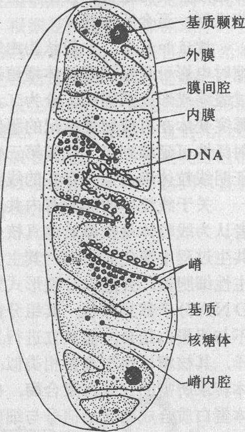 | 释义 | 线粒体xianliti广泛存在于真核细胞的细胞质中的一种由双层单位膜围成的细胞器,是细胞呼吸产生ATP的主要场所。最早发现线粒体的是R.A.科里凯尔(Kolliker)(1857),C.贝达(Benda)于1897年命名为线粒体。线粒体用詹那绿稀溶液活体染色后,在光学显微镜下即可看到。线粒体一般呈圆形、近圆形、棒状或线状,大小约0.3~0.8微米×0.4~3微米。细胞内线粒体的数目和分布与供能活动有关,消耗能量较多的细胞内线粒体数目多,细胞内需能部位线粒体比较集中。植物细胞内线粒体数目比动物细胞少,因线粒体的某些功能已被叶绿体取代。电镜下观察,线粒体由两层单位膜围成。外膜厚约6毫微米,蛋白质与脂类含量比约为1:1,膜的通透性很高。内膜厚约6~8毫微米,蛋白质与脂类含量比约为4:1,膜的通透性很低。内膜向内折叠成嵴,内膜和嵴的内表面上有许多有柄基粒。外膜上含有NADH—细胞色素C—还原酶系统,而内膜含有呼吸链和氧化磷酸化酶系。内外膜之间有宽约8.5毫微米的膜间腔,与嵴内腔构成一个连续空间,其中充满液体,含有腺苷酸激酶和核苷二磷酸激酶。内膜包围的线粒体内腔中充满基质,内有小的核糖体、磷酸钙沉淀颗粒,少量的环状DNA和RNA,以及三羧酸循环和脂肪酸氧化酶系等。线粒体是细胞呼吸的主要场所,三羧酸循环在线粒体基质中完成,通过呼吸链的氧化磷酸化在内膜上完成。在线粒体中葡萄糖、脂肪和氨基酸氧化分解释放的能量,以高能磷酸键形式贮存在ATP中,细胞生命活动需要的能量大约有95%来自线粒体中形成的ATP,故线粒体被称为化能转换器和细胞内能量供应的“动力工厂”。此外,线粒体还有贮存Ca24的作用。线粒体DNA能够复制,并有相应的蛋白质合成系统,但线粒体蛋白质大部分是由核控制。线粒体的增殖和生长是核基因和线粒体基因相互作用的结果。线粒体以分裂或出芽方式进行增殖。线粒体基因与细胞质遗传有一定关系。活细胞线粒体通过运动改变在细胞中的位置,不仅能够随着原生质流动而运动,而且能够向细胞需能较多的部位移动。线粒体基因指导合成蛋白质所用的遗传密码与核基因所用的密码有所不同。 线粒体mitochondria真核细胞中进行氧化磷酸化作用并释放能量的半自主性的细胞器。