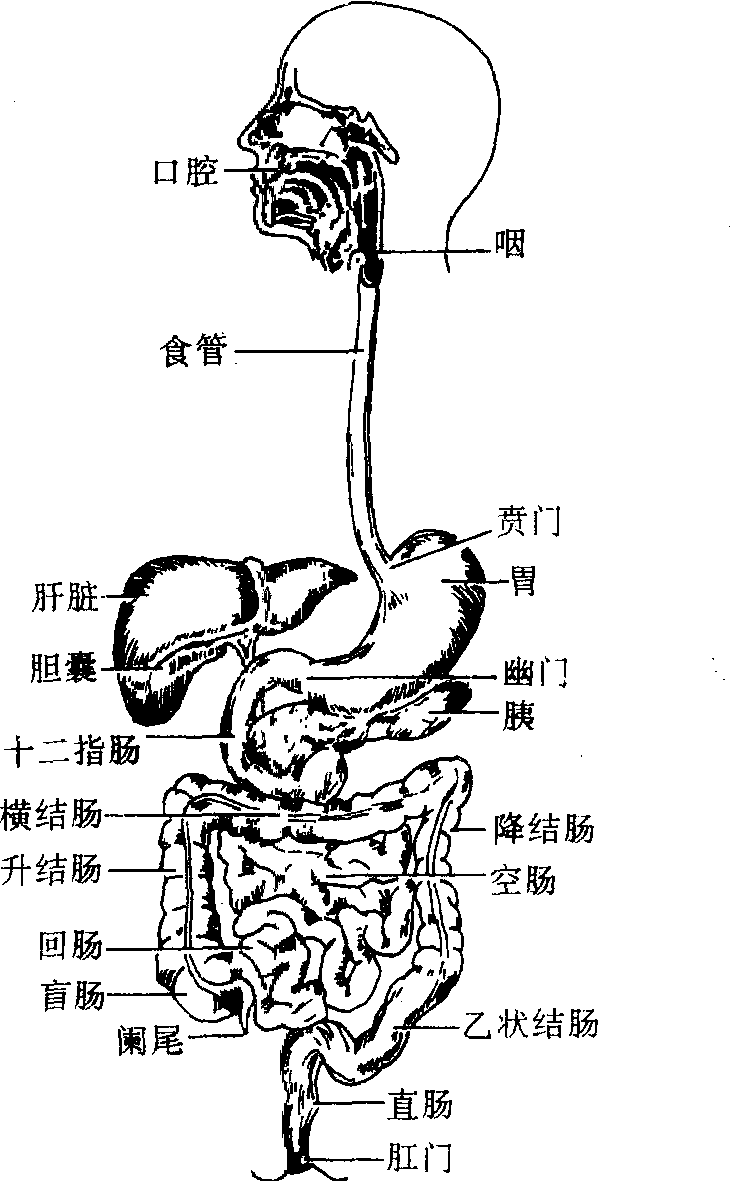 图1.1-4 消化系统 组织zuzhi由结构相似和功能相关的细胞与细胞间质组成的生理机构。根据其起源、结构和功能上的特点,人体组织可分为上皮组织、结缔组织、肌肉组织和神经组织四大类。它们以不同的比例相互联系、相互依存、形成人体的各种器官和系统,以完成各种生理功能。上皮组织由排列密集的细胞和少量细胞间质组成,呈膜片状,具有保护、分泌、排泄和吸收等功能;结缔组织由少量的细胞和大量的细胞间质组成,具有连接、防御和支持等功能; 肌肉组织有细长的肌细胞(也称肌纤维)构成,具有收缩功能;神经组织的细胞有很长的突起,能接受刺激和传导神经冲动。这四大类基本组织是动物在进化过程中,经历很多世代,在适应生活环境中逐渐形成的,并且陆续不断地在个体发育过程中固定和遗传下来。此外在动物进化过程中,组织的分化由低级到高级,其结构由简单到复杂,功能由兼有多种到比较专一和特化。 组织多细胞动植物体内由许多相似的细胞和细胞间质组成的基本结构,各有一定的形态、结构和生理机能。动物由胚胎的3个胚层产生出各种组织并有机地结合形成器官。高等动物有四大类组织,即上皮组织、结缔组织、肌肉组织和神经组织。种子植物有分生组织和永久组织两大类。前者能不断分裂,使植物长高和加粗。后者由分生组织分化而成,包括保护组织、薄壁组织、输导组织、机械组织和分泌组织等。 组织见“生物学一般”中的“组织”。 |
