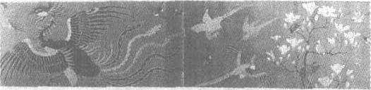 元。高53.5厘米,长548厘米。辽宁省博物馆藏。此织缎以棕黄色缎面为地,金彩纬丝通梭织百鸟朝凤图。图以凤为中心,四周百鸟或飞或鸣,花香鸟语,一幅盎然景色。图上钤有<肃世子之章>和<仁育万物>两大织印章。这幅织缎历经沧桑,仍保存完好,堪称稀世珍品。