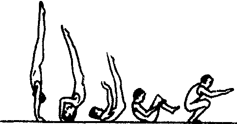| 释义 | 经手倒立前滚翻由手倒立姿势开始,做向前滚翻。动作要领:手倒立,以脚带动身体前倒,当失掉平衡时,迅速屈臂、低头、含胸,以头后部着地向前滚翻。当背部落着地时,立即团身抱腿至蹲立。保护与帮助:保护者站在练习者侧面,扶其腿促其重心前移,顺势放手,助其前滚翻。教学重点:由肩臂倒立开始做前滚翻,体会直体前倒、团身向前滚动的技术配合,然后在助力下做手倒立前滚翻。