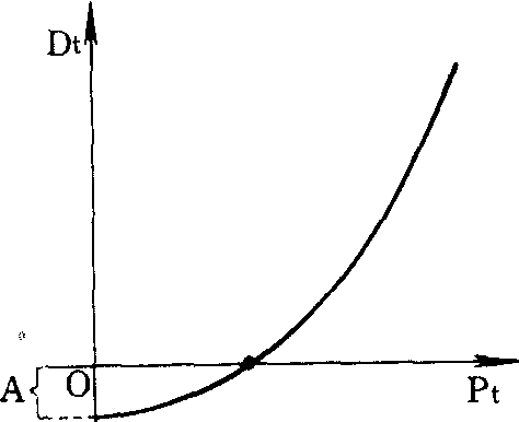 式中 Pt=Pt-n(1十r)n,Pt-n=在时间t以前n个时间段的种群密度,r=每一时间段的种群增长率,(1十r)n=复合增长因素。 防治费用与种群密度间则是指数曲线关系(见图2中防治费用曲线),其数学式为: