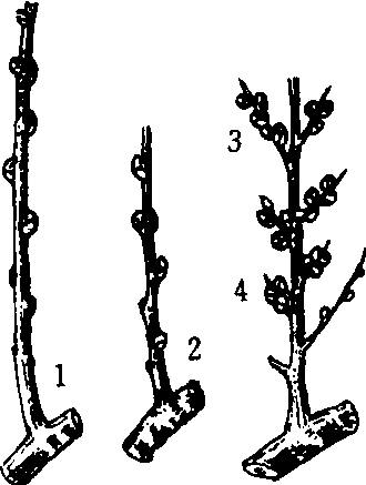 桃的结果枝 1.长果枝 2. 中果枝 3.短果枝 4. 花束状果枝 |