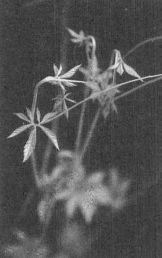 | 释义 | 绞股蓝fiveleaf gynostemmaGynostemma penta-phyllum(Thunb.)Makino,葫芦科,绞股蓝属。多年生草质攀援植物。多生长在阴湿山地、灌丛、草丛和密林。分布于中国长江流域以南各省区;于东南亚、南亚、朝鲜半岛和日本也有分布。植株细弱,分枝。趾状复叶,常由3~5小叶组成。卷须纤细,2歧。花单性,雌雄异株;雌花或雄花都呈淡绿色或白色,组成圆锥花序,但雌花序远较雄花序为小。果实肉质,球形,含种子2。种子卵状心形。花果期极长,从早春直至深秋。植株入药,有消炎解毒、止咳祛痰作用;植物体内含有绞股蓝皂苷,其功效几与人参媲美,可加工为药用滋补剂、高级化妆品和各种饮料,用途十分广泛。 绞股蓝葫芦科植物绞股蓝Gynostemma pentaphyllum(Thunb.) Makino.药用全草。味苦,性寒,无毒。消炎解毒,止咳化痰。主治慢性支气管炎。现试用于各种癌症。用量,内服:研末,每次2~3克,每日3次。 绞股蓝地方传统中药材。又名七叶胆。产于新宁县。为纤维细草。其总皂甙具有与人参皂甙相类似的化学成份和生理活性,药理研究证明,对胃、十二指肠溃疡的治疗有显著效果; 对肝癌、肺癌、子宫癌、黑色素肿瘤细胞的增殖有抑制作用,而对正常细胞无影响,因此它是抗癌防老之珍贵药物及保健佳品。近年中草药普查中发现,新宁县境内绞股蓝野生面积达40余万亩,总产干品1000吨以止。新宁县与省中医药研究所己联合研制出绞股蓝“精制浸膏”、“冲剂饮料”、“皇浆”等保健食品。 绞股蓝属葫芦科多年生落叶藤本植物。是平利县中高山区特产野草。它含有人参皂甙成份,并可分离出50多种绞股蓝皂甙,享有“人参草”之美称。绞股蓝有很高的营养价值和药理作用,能降血压、抑制癌细胞、抗衰老、解疲劳、促睡眠、增食欲,常年服用可以强身健体,延年益寿。用绞股蓝制成的绞股蓝冲剂、茶、绞股蓝三抗精等系列保健饮料风靡市场。