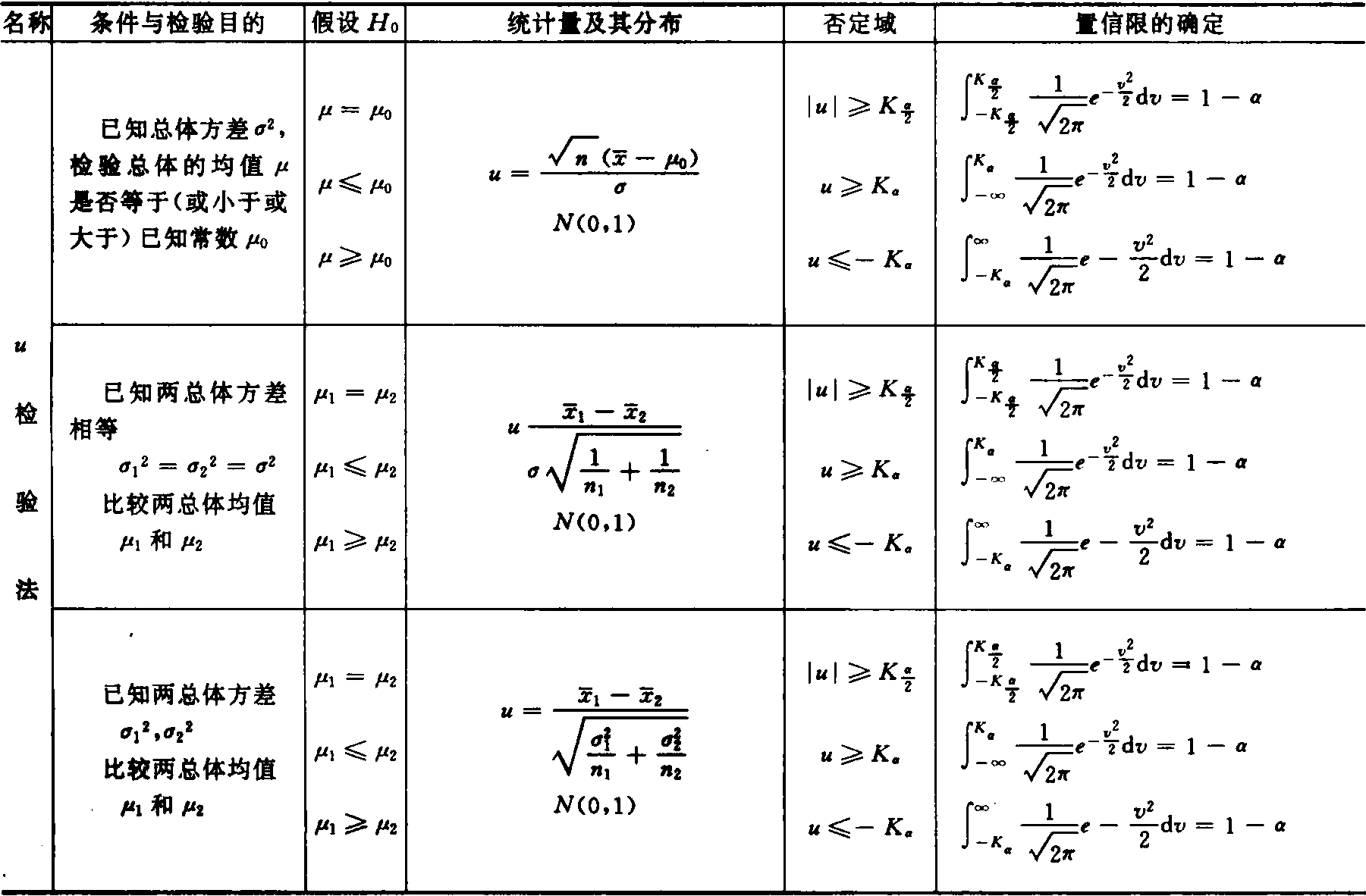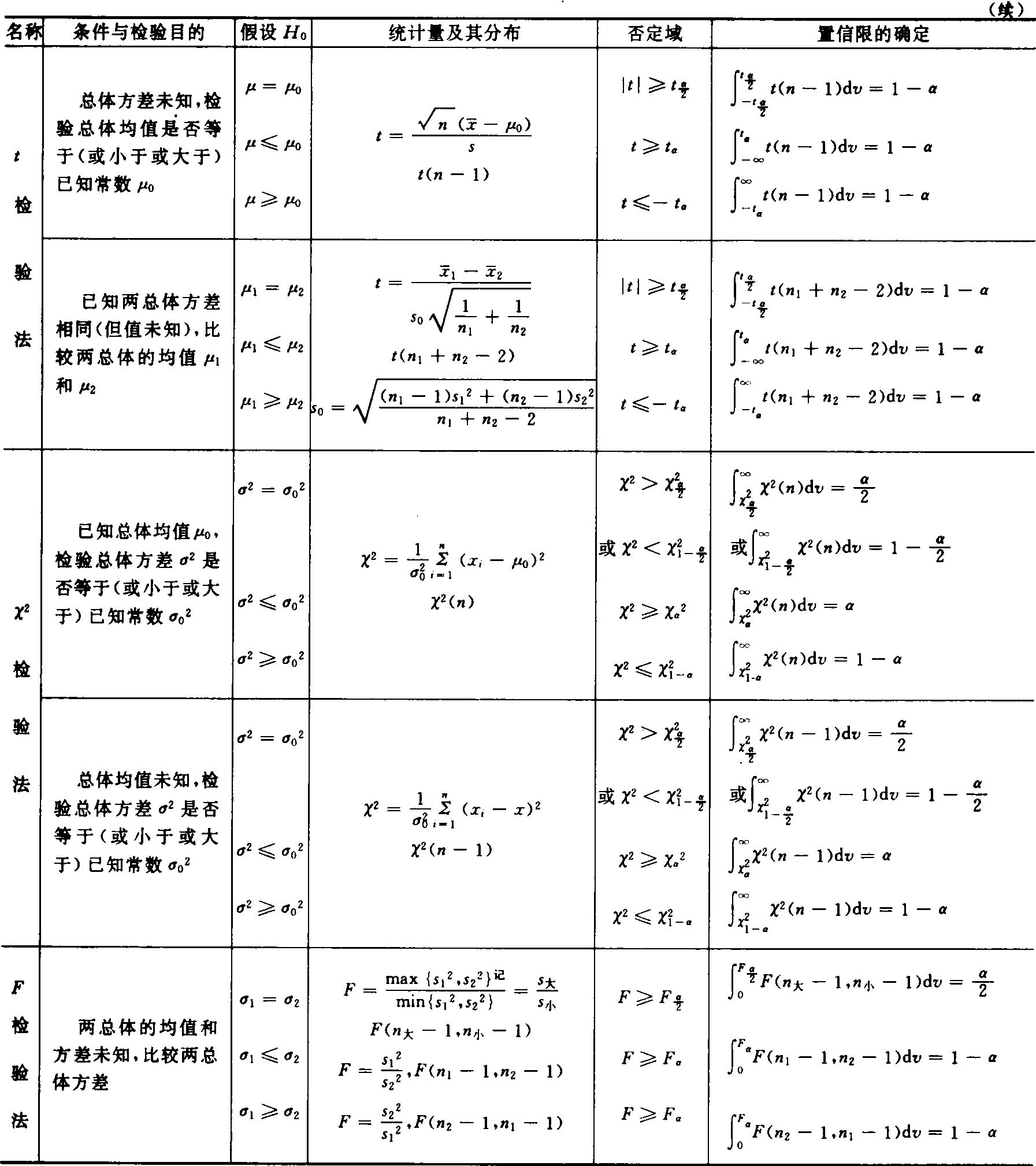 正态总体参数的统计假设检验表 农业化学研究中的许多随机变量服从正态分布,它们的平均数μ和方差σ2的检验因已知条件不同须分别采用u检验、t检验、x2检验和F检验如表所示。