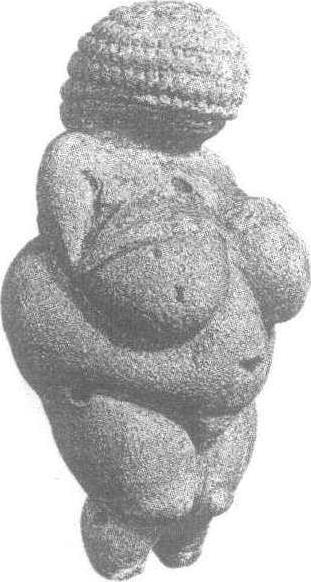 维林多夫女神像 维林多夫女神,又称“维林多夫维纳斯”,因出土于奥地利维也纳附近的维林多夫而得名,属于旧石器晚期奥瑞纳文化遗物,距今3万年左右。这件以整块卵形石灰岩雕成的女人体,高11厘米,大不过手掌,然而真切、强烈。头部微微前倾,上面雕满波浪式发纹,颜面压得很低,不见五官。上臂短小,以浮雕手法雕出。就整体看,人物比例失之准确,没有脖子,大腿粗短,但人体结构交待清楚,女性特征尤为明显,那滚圆的腹部、硕大的乳房、丰满的臀部,仿佛都经过了强调和夸张。然而这些近于球体、半球体的局部又统一于浑圆的整体之中,给人厚重、古朴之感。 旧石器晚期,人类已进入母系氏族社会,妇女负有物质生产和人类自身生产的双重使命,在社会生活中享有至高无上的地位。维林多夫女神像强调、乃至夸张了与生殖有关的部位,带有祈望人口繁衍、赞美生命的意蕴。 |