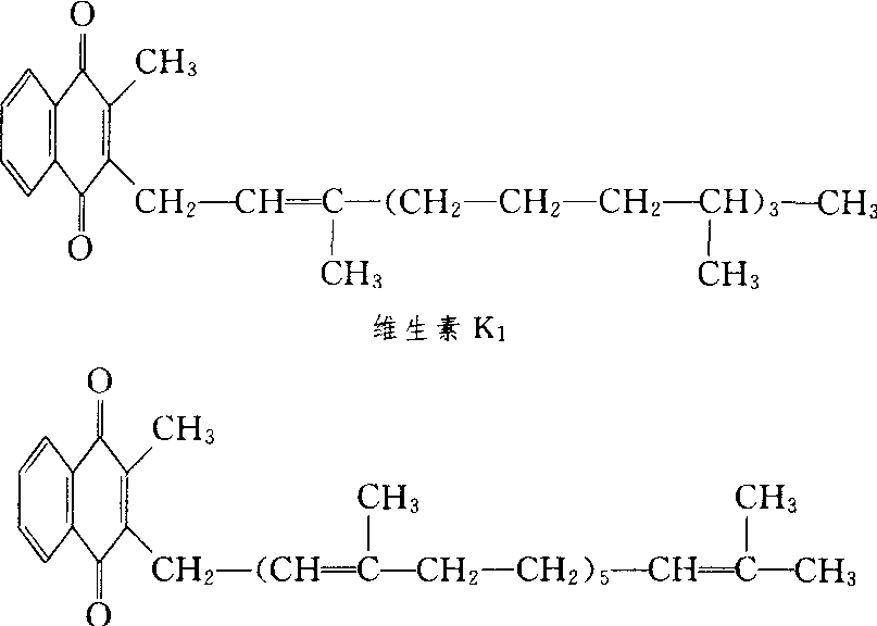 | 释义 | 维生素Kweishengsu K脂溶性维生素。生理上与凝血作用有关。维生素K对热稳定,但易被光和碱破坏。维生素K的生理功能主要是促进肝脏生成凝血酶原 (凝血因子Ⅱ),它还调节凝血因子Ⅶ、Ⅸ和Ⅹ的形成。维生素K缺乏,血液凝结时间延长,严重时可发生自发性出血,或轻伤后渗血不止。表现为皮肤、粘膜出现瘀斑瘀点,鼻、齿龈、眼结膜亦可见出血。新生儿脐部可渗血,消化道、泌尿道均可见出血,甚至发生颅内出血。维生素K主要来源于绿叶蔬菜,其次为豆类、肝等食物。肠道内大肠杆菌能合成维生素K,人体能将其部分利用。新生儿肠道缺少合成维生素K的细菌,血液中凝血酶原仅为成年人的20%。围产期为防止新生儿缺乏维生素K,可给孕妇或初生婴儿补充维生素K。患有胆道梗阻(婴儿肝炎、胆道闭锁等),肠内缺乏胆汁,脂肪吸收不良,易致维生素K吸收障碍。肠道疾病,如长期迁延不愈的腹泻、脂肪痢等,也有可能引起维生素K缺乏。长期或大量服用广谱抗菌素,抑制了肠道细菌的生长繁殖,可致维生素K的合成减少。 维生素K见“医药卫生”中的“维生素K”。 维生素K促凝血药。其脂溶性的分K1、K2。水溶性的分K3、K4,是人工合成品。肝脏利用维生素K合成凝血酶原而发挥凝血作用。用于治疗阻塞性黄疸,某些慢性腹泻,早产儿、新生儿出血或其它原因导致凝血酶原过低而出血。参见“农业”中的“维生素K”。 维生素Kvitamin K又称凝血维生素。一类2-甲基-1,4-萘醌的衍生物。有K1、K2、K3等几种。其中K1(2-甲基-3-叶黄烯基-1,4-萘醌)和K2(2-甲基-3-二法呢基-1,4-萘醌)为天然物质,K3(2-甲基-1,4-萘醌)等为人工合成产物。鲜黄色,溶于脂性溶剂,耐热,但易被光破坏。能促进肝脏合成凝血酶原,调节凝血因子Ⅶ、Ⅸ、Ⅹ的合成,从而加速血液凝固。另外,在细胞内对葡萄糖磷酸化起重要作用。在某些细菌(如分枝杆菌)内,可作呼吸链的组分。缺乏后,凝血时间延长,故在有创伤时,会流血不止。人和动物肠道内细菌能合成,故一般不易得缺乏症。肝、鱼、肉以及白菜和菠菜等绿叶蔬菜中含量丰富。