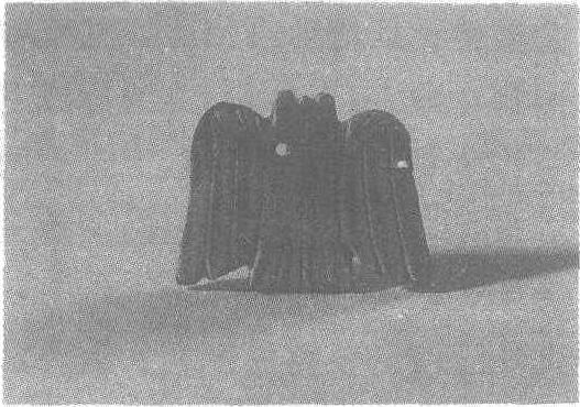 | 释义 | 绿松石鸟形饰新石器时代红山文化。长2.5厘米。1979年辽宁省喀左县东山咀遗址出土。辽宁省博物馆藏。绿松石为湖蓝色,十分鲜艳醒目。鸟勾喙,圆形双目,展双翅,尾羽微撒,以阴线饰羽毛。鸟饰造型优美,尤其是双翅构成柔和的曲线轮廓,弥补了平面雕刻的不足,使鸟儿显得十分活泼。近颈处有一圆穿,可穿系佩带。红山文化见“双兽首三孔玉器”条目。