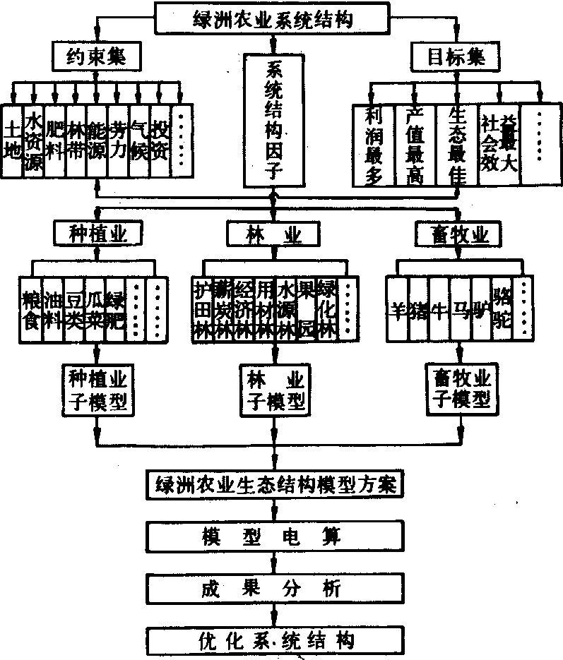 绿洲农业生态系统结构图 建设的要求 绿洲农业生态系统的组建,除系统环境控制外,主要表现在农田生态的土地建设,是通过工程措施、生物措施和农业措施,在田间合理组合与匹配来完成的。这些措施以水利工程为中心,以林草工程为保护,构成绿洲农业农田生态的基本土地结构形式。在中国的河西走廊,新疆玛纳斯河流域都有比较成功的绿洲农业典型。青海柴达木盆地干旱荒漠的香日德灌区农田的渠(沟)、林、路、田通过合理配置,构成了标准的农田结构。防护林的设置是根据田间机械作业、兴修水利及防风护田要求,按方田设计,主林带间距一般为250米,副林带间距500~800米,林带内农田面积为6~10公顷,相应进行了道路、渠系等工程设施的组合,形成了农田土地建设的基本格局。绿洲农业田间措施布设要求: ❶在平面配置中,各种工程措施相关位置要达到最佳布局,发挥单项和综合生态控制效益,满足经营和种植要求,反映出土地利用的合理性。 ❷在空间结构上,要从立体垂直方向创造最佳生态环境和保护效果。所谓空间结构就是根据水土和水盐调控运动及林(草)与风沙干旱控制等要求所组成的地上、地下农田生态的空间立体构成,要处于良性状态。 ❸在时间序列上,各项措施的建设次序,所需资金的投入,人力、机械的安排,生态效益的发挥等,要形成最佳序列。通过上述多维的合理设计,形成完善的农业生态和生产运转体系的基本结构,加上养用结合,合理种植,培肥地力和科学管理运用,才能创造绿洲农业生态的良性循环系统。所以,建设绿洲农业生态的土地建设应包括设计、实施和管理调运一系列过程。 建设的基本措施 建设完善的绿洲农业结构,其措施项目主要有:❶水土(盐)平衡系统,包括:灌溉系统设计,排水系统设计,井灌井排设计,水土、水盐平衡调控与监测。 ❷生物平衡系统,包括:林网系统设计,作物种植制度及用地比例的合理确定,农林牧业结构及土地培肥与养护和其他农业措施的确定。 ❸绿洲农业方(条)田设计,包括:方(条)田规格、形状、方向及措施的合理配置设计,方(条)田管理运行设计和综合效益评价与监测。 |
