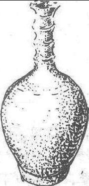 辽代瓷器。1973年内蒙古阿鲁科尔沁旗矢山口乡辽墓出土。高21.5、颈径3、足径6.8厘米。侈口,圈足,胎白质细,肩部一道凸弦纹,三道沟弦纹。内外皆施暗绿色釉,造型新颖,是又一种辽瓷瓶新器型。今藏阿旗文管所。