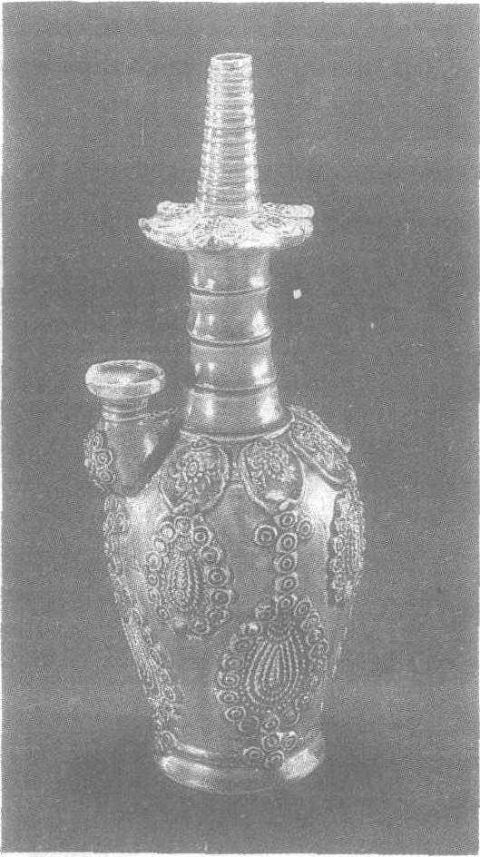| 释义 | 绿釉贴花直颈瓷瓶辽。1987年北京密云出土。北京市文物研究所藏。这是近年出土的一件较为精致的辽代瓷器。瓶腹部长圆,颈部呈锥形,向上内收,并有一道道弦纹,颈部约1/2处有扁平状轮形物,其上贴花。瓷瓶腹部饰璎珞状贴花装饰。瓶流呈盘口壶状,富有特色。通体绿釉浓郁深沉。此瓶形制类似宋代定窑所烧净瓶,花纹立体感强,并具有金银器的装饰风格,是件灵巧精致的作品。