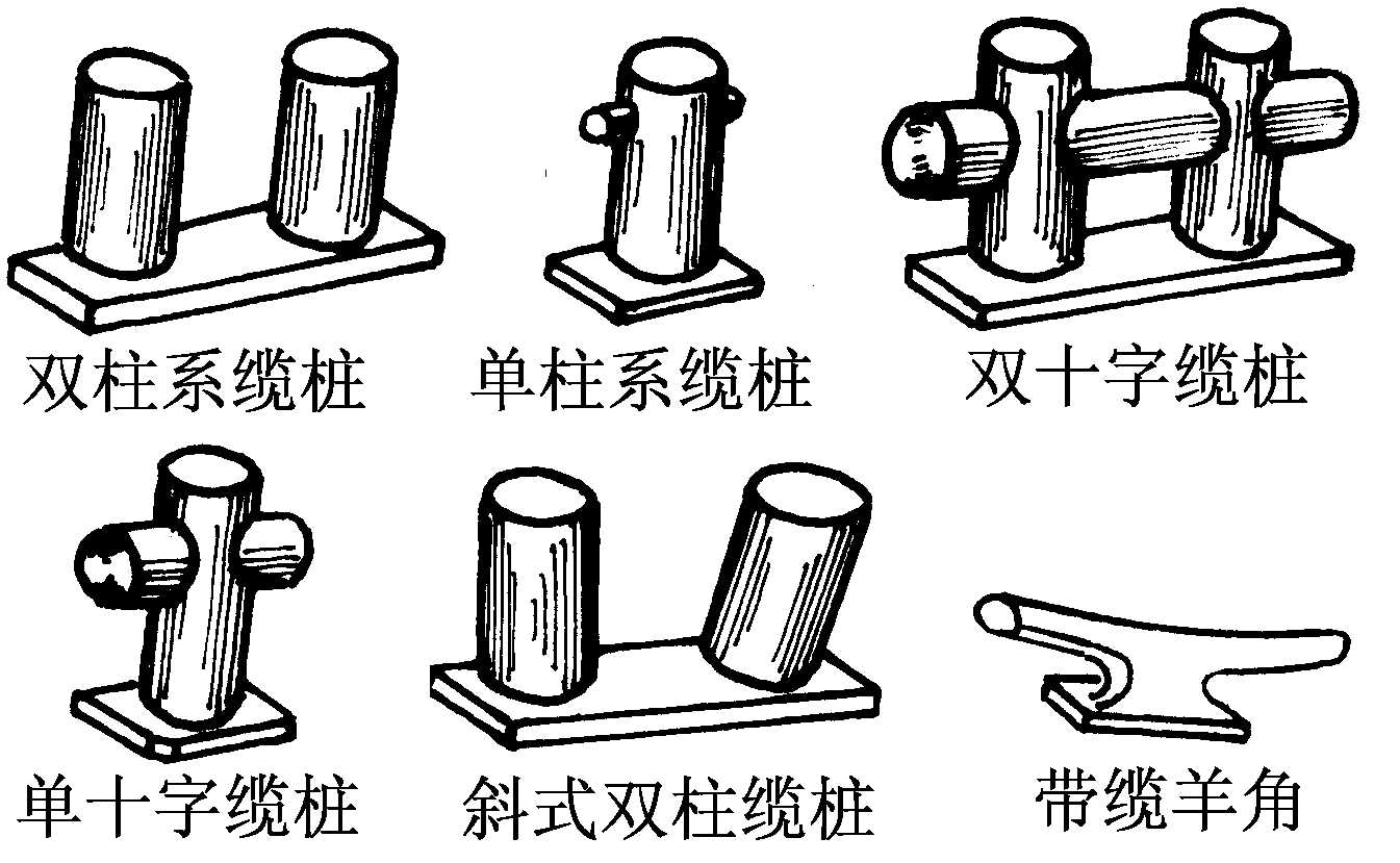 | 释义 | 缆桩bitt;bollard又称“系缆桩”,“带缆桩”。系指固定在甲板上或码头边用以系揽缆绳的桩柱。一般由金属铸造或焊接而成。因为使用时其受力很大,所以要求其基座十分牢固。有单十字缆桩、双十字缆桩、直立式缆桩、斜立式缆桩和羊角形缆桩等。为使缆绳不易从缆桩上滑脱,一般在缆桩顶部覆有比桩身略大的桩帽。在船上,缆桩通常安装在船首、船尾和船中左右甲板上。