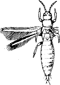 缨翅目Thysanoptera。通称蓟马。昆虫纲、有翅亚纲、过渐变态类。分为2亚目、3总科、6科: ❶锥尾亚目,分纹蓟马总科(纹蓟马科),蓟马总科(异蓟马科、蓟马科、长节蓟马科),珠角(大腿)蓟马总科(珠角(大腿)蓟马科); ❷管尾亚目:管蓟马科。世界已知约5 000种,中国记载有160余种。中国常见的蓟马有:烟蓟马,玉米黄呆蓟马,稻蓟马,禾蓟马,小麦皮蓟马,带纹蓟马,塔六点蓟马。 形态 体细小,长0.5~1.2毫米,淡黄至棕黄或黑色。头近于方形或长方形,复眼发达,小眼面大而凸; 有翅型有2~3个单眼,无翅型缺单眼。触角丝状或念珠状,6~10节,在第三、四节及其他节上具明显的锥状、叉状及带状等感觉器官。具刺吸式口器。前胸分离,中、后胸愈合。跗节1~2节,爪1~2个,跗节端部有一个显著突出的端泡,静止时缩入跗节内。翅细长,膜质,1~2对或无翅,具两对翅者,前后翅大小、形状相似,翅脉极少,多时仅具2~3根纵脉,横脉少或无; 周缘具长缨毛。腹部长,尾端细,10节。锥尾亚目雌虫在第八、九腹板间有一镰刀形具锯齿的产卵器;管尾亚目则由第十节延伸呈管状无特殊产卵器。雄虫外生殖器构造复杂,是分类的重要特征。气门中、后胸各一对,腹部8对;尾蓟马科有气门11对(见烟蓟马图)。 习性 行两性或单性生殖,卵生或卵胎生。锥尾亚目卵单粒产于植物组织内,卵肾形,管尾亚目卵单粒或聚成块产于植物表面,卵长卵形。初孵若虫与成虫相似,一般4~5龄,经第二次蜕皮后,若虫着生明显翅芽称“前蛹”,此期间钻入土缝或在植物叶下蜕皮化成“伪蛹”。“前蛹”期一般较活泼,“前蛹”与“伪蛹”不同处是前者触角游离,翅芽短,复眼小,无单眼;后者蛹期较长,受惊时尚可活动。若虫、“伪蛹”与成虫均可越冬。 多在植物的花、叶、果实、菌类上、树皮下,或栖息在腐败的树木中和土中,或在叶上形成虫瘿。食性复杂,有的捕食蚜虫、粉虱和螨类; 有的为害禾谷类、棉花、烟草等,甚至有侵害人体者。如蓟马科的烟蓟马(棉蓟马)为害棉花、烟草、洋葱、马铃薯、豆类、十字花科、旋花科植物及多种果树,并能传播斑枯萎病毒。在田间常成群蜇人,并钻入眼、耳、口、鼻中,造成骚扰。为害棉花的还有巢蓟马属Caliothrips和花蓟马属的种类。为害柑橘有橘实硬蓟马,榕树蓟马可使植株形成虫瘿。有些在花上活动的种类能帮助授粉;捕食性种类,如横纹蓟马生活于大豆与苜蓿等植物上捕食植食性蓟马、蚜虫和叶螨。 缨翅目昆虫纲的一目。体积细小,锉吸式口器,翅三对,极狭,翅缘多长毛。足前跗节常呈泡状。如蓟马。 缨翅目Thysanoptera俗称蓟马。昆虫纲,有翅亚纲。体形细长,长2~14 mm。黄、褐、苍白或黑色,有些种类若虫红色。头部方形至长方形,锉吸式口器,下口式。触角6~9节,复眼发达,单眼2~3个,无翅型缺单眼。翅狭长、膜质,边缘具长缘毛,翅脉仅2~3根。足短小,跗节1~2节,末端具一能伸缩的端泡。无尾须,雌虫具锯状产卵器或缺如。过渐变态。若干种类营孤雌生殖。植食性,喜食植株幼嫩部分,亦有生活于树皮下或菌类间,少数为肉食性,以捕食蚜虫、粉虱等类为生。本目下设管尾亚目与锥尾亚目,世界已知3 000余种,中国已知百余种,很多为重要农业昆虫,如稻蓟马(Thripsoryzae Williams)及捕食性天敌六点蓟马(Scolothrips sexmacu-latus Pergande)。