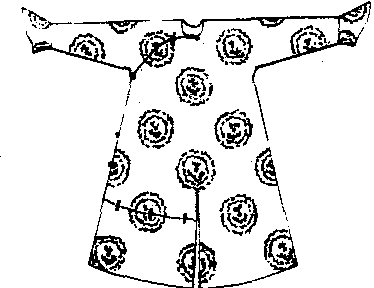 | 释义 | 缺襟袍quējīnpáo清代文武官员出行时所著的一种长袍。原为便于骑马而制。右襟下部被裁下一块,平时用纽扣绾结,骑马时则解下,以便活动。清袁枚《随园随笔·原始》:“今之武官,多服缺襟袍子,起于隋文帝征辽,诏武官服缺胯袄子。唐侍中马周请于汗衫上加服小缺襟袄子,诏从之。”清赵翼《陔余丛考》卷三三:“凡扈从及出使,皆服短褂、缺襟袍及战裙。”福格《听雨丛谈》卷一:“若缺襟袍,惟御用四开禊,宗室亦用两禊。”范寅《越谚》卷中:“缺襟袍,大襟下截缺块接续者。” 缺襟袍又称“行袍”,是清代皇帝、亲、郡王外出狩猎和巡行时例穿的一种长袍。“缺襟袍,袍之右襟短缺,以便于骑马者也。行装所用”。此种袍子,是由隋朝的缺胯袄子演变而来。隋文帝(581—601) 征辽,诏武官服缺胯袄子 (即开衩袄)。便于骑马征战。清入关后,规定了行袍式样,即圆领、大襟、带箭袖,下摆开禊,袍长在膝盖以上,比常服袍约短十分之一,右前襟缺一尺,骑马时用纽扣联在里襟上。其方便程度,比缺胯袄则更进了一步。缺襟袍还可当作礼服,“京外大小文武各官,若因公出差,以礼服谒客,则行装”。见客时行袍外不用加外褂,只罩一件大袖马褂即可。 缺襟袍满族服饰。又名 “行袍”。为清朝满族男子骑射或外出时穿着的长袍。为无领大襟长袍,袍长及膝,袖长过手,袖端作马蹄状,俗称“马蹄袖”,平时卷起,冬季袖头放下,覆指防寒。袍之下摆前后左右均开气,便于上下马,袍前部右下摆裁缺尺余,另补一幅,联以纽扣,狩猎骑射可随时解下,右腿活动自如,不被衣绊,或于补襟底端订上纽扣,将右襟底摆向内提拉与袍内纽扣相结。锡伯、蒙古等北方少数民族皆喜穿用。 缺襟袍满族服饰。又名行袍。袍之右襟下摆裁缺尺余,另补一幅,联以纽扣,可随时解下,便于骑射,清代常于外出时穿著。