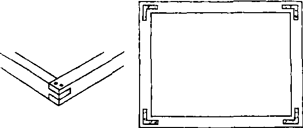 绷网的框架。有金属、木质的两种。金属的不宜变形,更为理想。一般用木质网框,框架宽约5厘米,厚约3.5厘米。如做木框架还要加宽加厚,以保证木框在遇水后不宜变形。木框四角的接榫要平整、牢固,这样在印刷时才能和印刷台保持水平面。