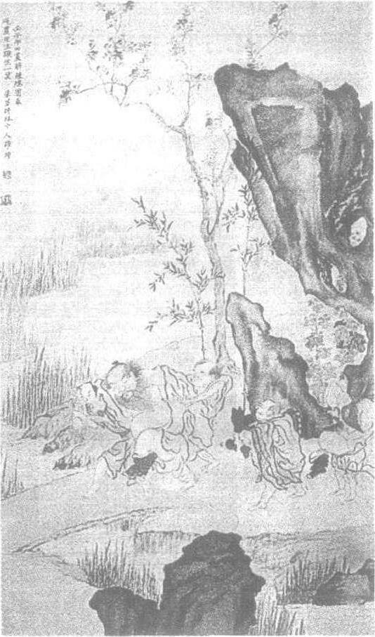 罗聘 《醉钟馗图》 罗聘(1733——1799),字遁夫,号两峰,又号花之寺僧。原籍安徽歙县,迁居扬州。为金农高足。曾为金农代笔,以应四方索画者。善画梅、兰、竹,尤喜画鬼,自云: “凡有人处皆有鬼,鬼所聚集常在人烟密簇处,僻地旷野,所在殊稀。”纪昀说: “所画鬼趣图,颇疑其以意造,中有一鬼,首先于身几十倍,尤似幻妄。” 今见罗聘所画的鬼,或大头小身,或长臂巨腿,只是把人的比例加以畸形化而已。以鬼喻小人,借题发挥。画梅繁花密蕊 ,生意盎然。画竹叶肥而短,稠密成簇。画兰丛密繁茂。 |