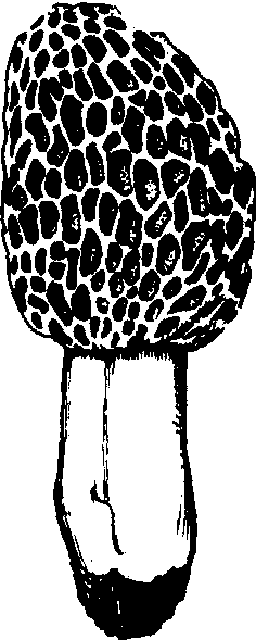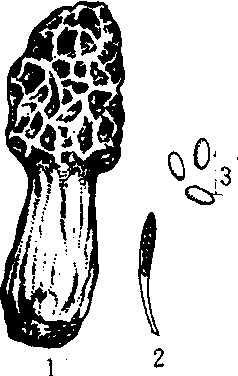羊肚菌 1.子实体 2. 子囊 3.子囊孢子 |