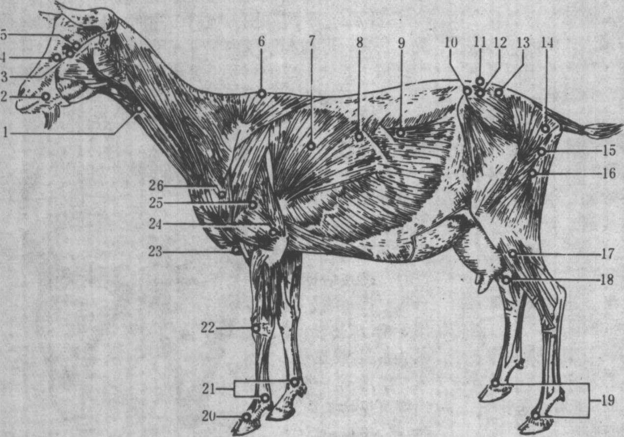 图1 羊的肌肉及穴位