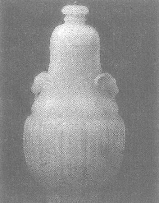 | 释义 | 羊首耳玉瓶清乾隆。高27厘米,口径5—7厘米。北京故宫博物院藏。由优质的羊脂白玉制成。瓶体呈扁圆形,椭圆形口,瓶腹刻莲瓣纹。花瓣瘦长,刻工精美。颈部雕两羊首为耳,虽装饰性较强,但不失羊的温顺气质。配于瓶口的盖似一倒置的高足碗,盖钮刻出绳纹一周,并有浅浮雕的如意云纹。此瓶寓意吉祥,瓶与平同音,羊与祥通假,象征平安吉祥。这类有美好寓意的器物制作在乾隆时期十分流行。