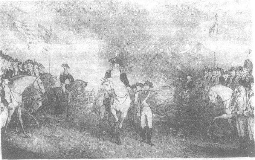 英军在约克镇向华盛顿投降 美国独立战争又称“北美独立战争”。1775—1783年北美13个殖民地人民推翻英国殖民统治,争取独立的战争。17世纪初,英国殖民主义者在北美先后建立了13个殖民地。18世纪中叶,殖民地经济有很大发展,英国对殖民地的经济掠夺也不断加强,相继颁布《印花税法案》、《唐森德条例》、《茶叶税法》等法令,激起殖民地人民的强烈反对。1774年9月,殖民地代表召开第一届大陆会议,通过《权利宣言》,要求英国取消殖民地的经济限制和5项不可容忍法令,允许殖民地自治,并决定抵制英货。次年4月19日,英军与波士顿民兵在列克星敦发生冲突,战争爆发。5月,召开第二届大陆会议,决定将民兵改编为“大陆军”,任命华盛顿为总司令,组织人民进行抗英战争。大陆会议于1776年7月4日通过《独立宣言》,宣告成立独立的美利坚合众国。战争初期,英军处于优势。1777年萨拉托加一役,英军战败,美国转向进攻。美国还利用欧洲国家同英国的矛盾,联合法、西、荷对英作战。1781年10月间,英军投降,1783年9月3日,英美签订《巴黎和约》,英国正式承认美国独立。列宁把这次战争称为“伟大的、真正解放的、真正革命的战争”。 美国独立战争也称北美独立战争,指1775—1783年英属北美殖民地人民为推翻英国殖民统治,争取民族独立的革命战争。 美国独立战争亦称“北美独立战争”。18世纪70—80年代英属北美13州殖民地人民推翻英国殖民统治、争取民族独立的战争,也是美洲首次成功的资产阶级革命。英国殖民者长期压迫和剥削美国人民是导致这场战争爆发的根本原因。“七年战争” (1756—1763)后,英国加紧了对殖民地的压榨,不断激起北美资产阶级、种植园主和人民大众的强烈反抗。1773年12月的波士顿沉茶事件,把反英斗争推向高潮。1775年4月19日,波士顿民兵在列克星顿、康科得武装伏击英军,拉开战幕。同年5月,第二届大陆会议代表在人民群众武装斗争的压力下,通过了对英“必须采用武力” 的宣言,作出了组织大陆军并任命华盛顿为总司令的决议。大陆会议经过激烈争论,于1776年7月4日通过了杰费逊等5人起草的《独立宜言》,宣布美利坚合众国摆脱英国独而立。战争第一阶段(1775—1777年10月),英军处于优势,但北美人民纷纷组织民兵、民团,成立“通讯委员会”,采用机动灵活的游击战、散兵战,四处打击英军。1777年10月萨拉托加之役,美军获胜,扭转战局。战争第二阶段(1777年11月—1781年),广大人民群众尤其是黑人的积极参军参战,加上驻法公使富兰克林巧妙地利用了当时欧洲各国与英国的矛盾,争取到了法国、西班牙、荷兰参战和俄国、普鲁士等国的“武装中立”,从而得到了暂时的同盟者,终于在1781年10月19日的约克镇战役中,击溃英军主力,迫使英国媾和。1783年9月,美撇开法、西、荷单独与英国在巴黎凡尔赛签订和约,英国正式承认美国独立。至此,美国走上了独立发展的道路。 美国独立战争1775~1783年,英属北美13个殖民地(美国独立后称州)人民推翻英国殖民统治、争取独立的革命战争,亦称“北美独立战争”。1775年4月19日,战争首先在列克星敦爆发。6月14日,北美组织各殖民地联合武装力量——大陆军,任命华盛顿为总司令,并于1776年7月4日发表《独立宣言》,成立美利坚合众国。1777年萨拉托加战役英军5000余人投降后,美军转入反攻。1781年10月19日,被华盛顿统率的美法联军1.6万余人(其中法军7000余人)包围在弗吉尼亚半岛上的约克敦英军主力(7000余人)投降。1782年11月30日,英国政府与美国达成停战协议。1783年9月,英美签订《巴黎和约》,英国被迫承认美国独立。 |