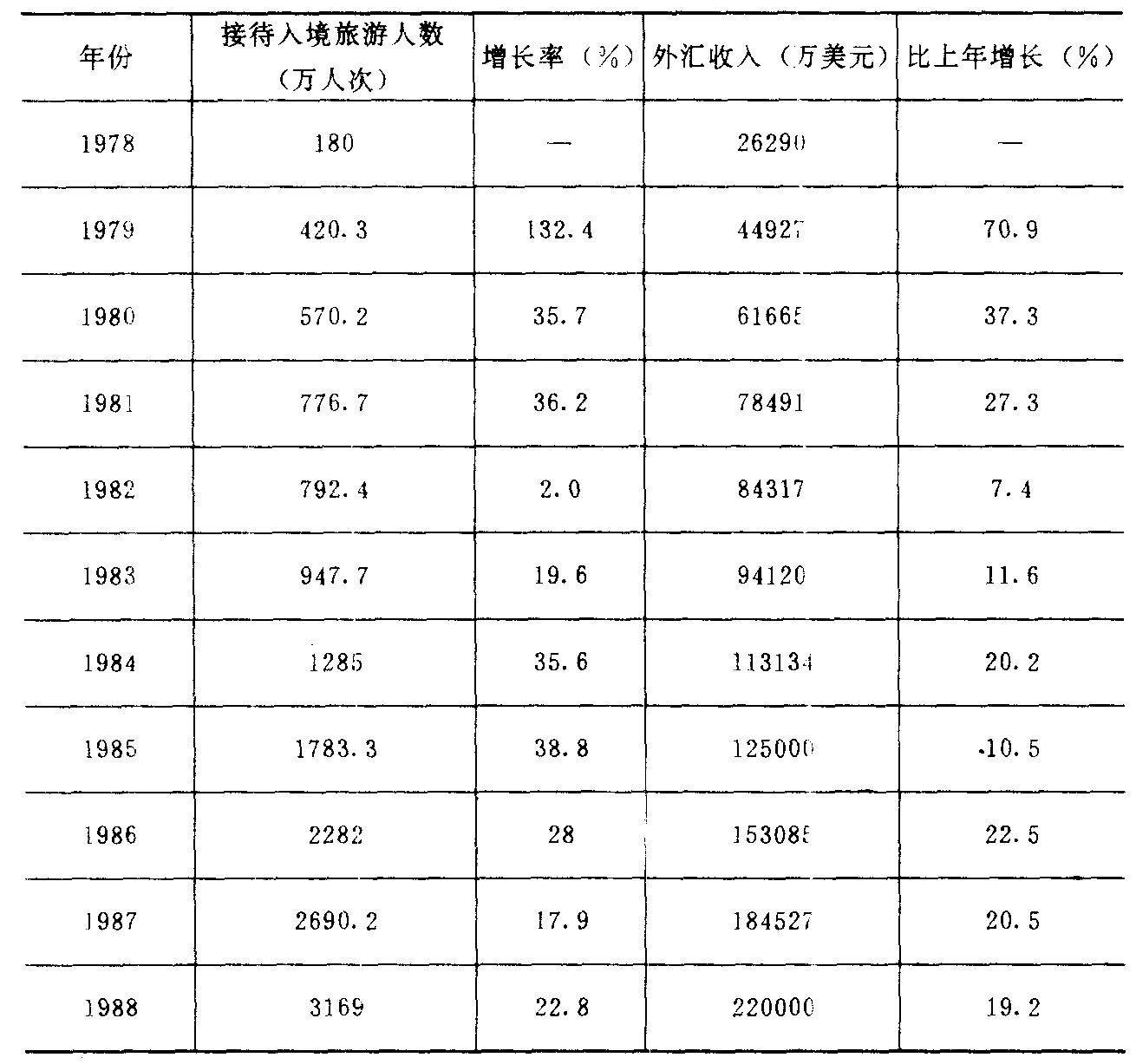| 释义 | 中国旅游业zhongguo luyouye我国是旅游活动开展最早的国家之一,有悠久的历史和优良的传统。我国历代许多旅行家以及地理、军事、政治、文学家等都曾出于不同的目的,跋山涉水,进行各种性质的旅游活动,并留下了丰富的科学遗产和旅游文学作品。同时也有许多外国人士远道前来我国旅游。尽管如此,中国直到封建王朝崩溃为止,从未形成过独立、完整的旅游业,也从未有过自己的经营管理全国旅游事业的机构。旅游业作为一项经济事业,在我国迟至本世纪20年代才开始产生。回顾我国旅游业的历程大体经历了三个发展阶段:❶解放前的初创阶段。1923年,上海商业储蓄银行开设“旅行部”,它是我国第一家经营旅游业务的企业;1927年,其办事机构和业务范围都有所扩大,并正式更名为“中国旅行社”,此即我国第一家旅行社。为开展旅游业务,该社在苏州、北京、天津等15个城市设立分支社;在伦敦、纽约、河内等地开设了分社,承办外国游客来华旅游事宜。同时,在徐州、北京、西安、青岛等地办起旅游招待所,这是我国自己开办现代旅游旅馆的开端。 近年接待人境旅游人数及外汇收入表