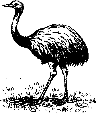 图313 美洲鸵 美洲鸵美洲鸵目美洲鸵科美洲鸵属唯一种。足具3趾,善奔跑。尾羽退化。栖于草原地带,杂食性。集群生活,常20~30只集群活动。每窝产卵10余枚,可多达20~30枚。卵大小约132mm×90mm,重约600g。全由雄鸟孵卵,经35~40d孵化出雏。 |