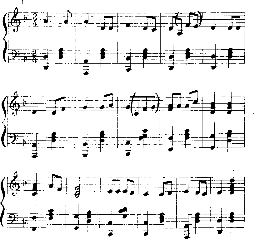 | 释义 | 羽调式歌曲和声配置Yudiaoshi gequ heshengpeizhi羽调式也是重要调式之一,属于小调性范畴。其主音为羽 (La),上、下五度骨干音分别为角(mi)和商(re),其主和弦的构成音均为正音,属和弦和下属和弦中都有偏音,但分别处于五音及三音位置。羽调式中的这三个和弦都可直接采用。羽调式和声配置举例:例1《乡间小路》,例2《瑶族舞曲》(此例为羽调式与宫调式互转):