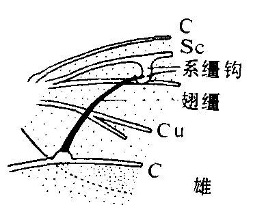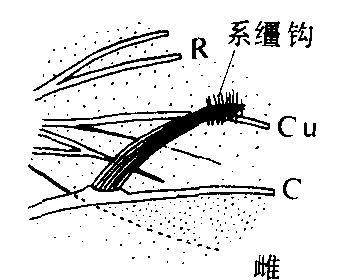 | 释义 | 翅连锁器wing-coupling apparatus将昆虫前后翅连锁成一体,以增进飞行效力的各种特殊构造。主要有翅轭、翅缰和系缰钩三种(见图)。