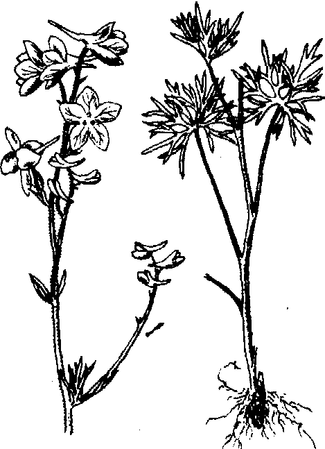 习性和繁殖栽培 翠雀花喜凉爽、通风、日照充足的干燥环境和排水通畅的砂质壤土。可用分株、扦插和播种法繁殖。分株春秋均可进行,扦插可于春季新芽长至15~18cm时切下插入砂中,生根后移栽,也可于花后取由植株基部抽生的新枝扦插。播种多在3~4月或9月份进行,发芽适温15℃左右,高温对种子萌发有抑制作用。栽前施足基肥,追肥以氮肥为主。老龄植株生长势衰弱,2~3年需移栽一次,移栽时增施底肥。翠雀花植株高大,易倒伏或弯曲,需支撑固定。用于切花宜在80%的花朵开放时剪切。 病害防治 黑斑病(Marssonina rosae):其病原为假单孢杆菌,受害叶面出现不规则的、光滑的焦油状斑点,叶背病斑浅褐色。可用拔除病株和喷施链霉素的方法防治。此外还有根颈软腐病等。 园林应用 可丛植,栽植花坛、花境,也可用作切花。 本属植物约300种,常见栽培的还有:美丽翠雀花(D. belladonna),别名颠茄翠雀。宿根草本植物,分枝多,花大,20世纪初选育成功,是当今园艺品种的主要栽培品系之一。高翠雀花〔D. elatum (D. pyrami-dale)〕,宿根草本植物,染色体数2n=32。株高120~180cm,茎光滑。叶大,稍被毛,下部叶片掌状5~7裂,上部叶片3~5裂。花径4cm。原始种花为蓝色,现有园艺品种4000个以上,多为重瓣,有蓝、紫、桃红及白色等,是当今主栽品系之一。原产法国及西班牙山区和亚洲西部。裸茎翠雀花(D.nudicaule),宿根草本植物,染色体数2n=16。原产美国加利福尼亚。株高35~60cm,多分枝。叶片3裂,稍肉质,圆形。花瓣黄色,萼片橙红色,花期4~7月份。扎里耳翠雀花(D.Zalil ),宿根草本植物,原产伊朗。株高80~100cm,单茎或少分枝,具地下块茎。叶具狭线形裂片。疏总状花序,花黄色,花期7~8月。丽江翠雀花(D.likiangense),生于山地草坡,总状花序,花色青紫,具芳香。产中国云南。康定翠雀(D.tatsienense),株高50cm左右,伞房花序,花色蓝紫。产中国四川西部及云南北部地区。 |