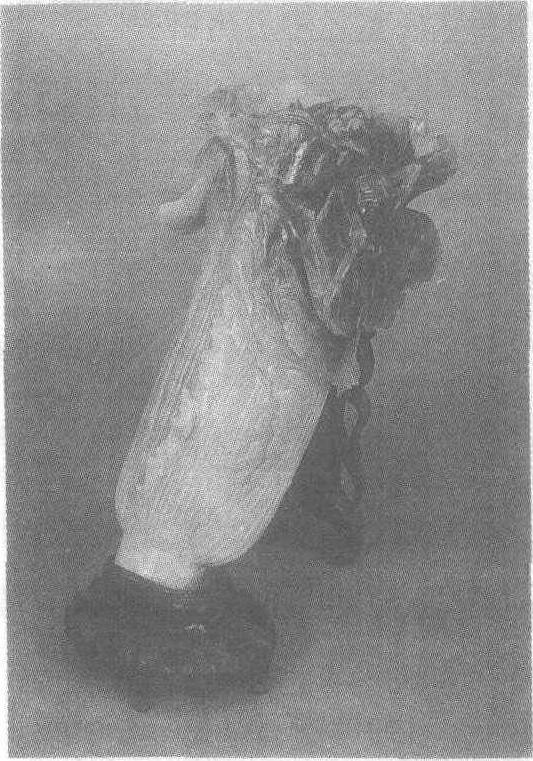 | 释义 | 翡翠白菜清。长18.7厘米,纵5厘米,横9.1厘米。台北故宫博物院藏。白菜用一块玉雕琢而成。根据玉的不同颜色加以巧作,白色部分雕成菜根和菜身,绿色部分琢为菜叶。玉工技艺高超,完全按照白菜的形象创作,菜梆上细细的筋丝,菜叶的卷曲外翻,每片叶子的不规则边缘,无不惟妙惟肖,菜叶上还浮雕两只螽斯,更增添了浓厚的乡土情趣,人见人爱,流连忘返。此为清代巧琢的代表作,也是台北故宫博物院玉器藏品中的名器,为玉器著作中必选的作品。