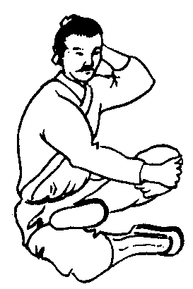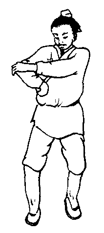 本功法习练方法如下: ❶两手按大腿,向左右扭转身体14至27次; ❷两手捻大腿,左右扭身14至27次; ❸两手抱头,左右扭腰14至27次; ❹左右摇头14至27次; ❺一手抱头,一手托膝,头膝曲折3次,左右同(见图2—1—12); ❻两手托头,举3次; ❼一手托头,一手托膝,从下向上托3次,左右同(见图2—1—13); ❽两手攀头向下,顿足3次; ❾两手相叉过头,左右各3次; ❿两手相叉,置手于胸前,来回推拉3次;(11)两手相叉,着心3次;(12)曲腕筑肋,挽肘,左右各3次(见图2—1—13);(13)左右拉,前后拔臂各3次;(14)舒手挽项,左右各3次;(15)反手着膝,另手拉肘后也放在膝上,左右各3次;(16)手摸肩,从上至下摸遍,左右手轮做;(17)两手握空拳互击3次;(18)外展内收手臂3次,双手亦3次;(19)两手相叉反复搅各7次;(20)摩扭指3次;(21)两手反摇3次;(22)两手反叉,上下扭肘多次,呼气10次;(23)两手上耸3次,再下顿3次;(24)两手相叉头上过,左右伸肋10次;(25)两手拳反背上,揩脊上下3次;(26)两手反捉,上下直脊3次;(27)双手掌下按,后将双腕内外振动3次;(28)双掌向前耸3次;(29)双掌两手相叉,交横3次;(30)双手横直,即耸3次。习练者若有手冷疾患,可以从上到下打,得热便止;(31)舒左脚,右手承之;右手撩脚,从上到下直脚3次,左右同;(32)前后扭转,左右扭转足各3次;(33)前后退、捩足、直脚,直脚各3次;(34)扭大腿3次;(35)内外振脚3次。若有脚冷者,打热便止;(36)扭大腿,随意做多少,后顿脚3次;(37)却退、直脚3次;(38)虎踞,左右扭肩3次;(39)托天托地,左右3次;(40)左右排山,负山拔木各3次;(41)舒手直前,顿伸手3次;(42)舒两手、两膝各3次;(43)舒脚直反,顿伸手3次;(44)扭转内脊、外脊各3次。 本功优点是从上到下活动肢体较为全面;缺点是全套节数较多,且动作不够具体,作用也未加说明。 |