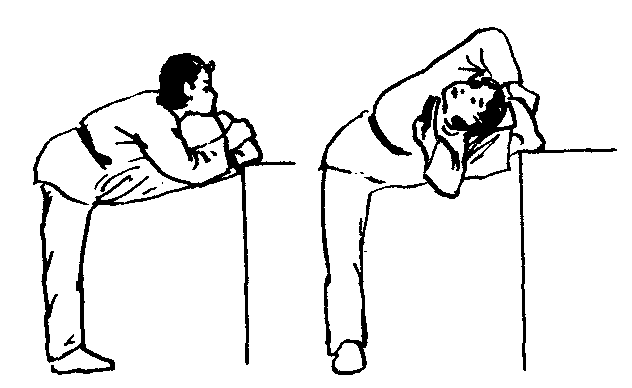 腿功之一。即在正压腿,或侧压腿的基础上,自己用手搬住脚,使头部接近脚尖至最低点停住不动。此练习可以很好地有效地发展腿部的柔韧性。但要求一定要在压腿的基础上进行耗腿,每次5~10秒钟,练习耗腿时,一定要循序渐进,以防拉伤。(图2—4—7)