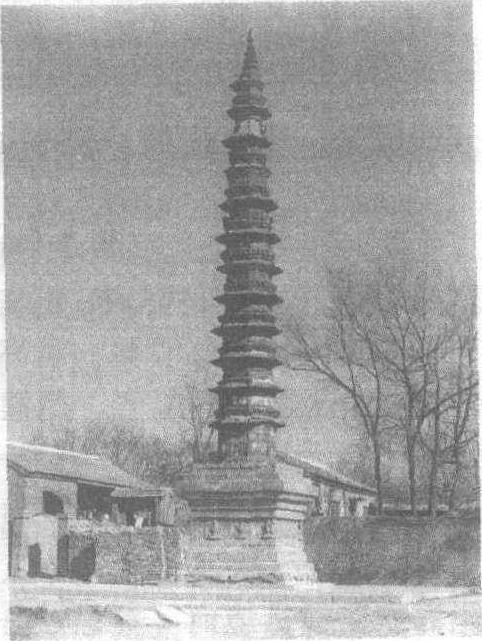 聊城铁塔宋代楼阁式铁塔。位于聊城市东关运河故道南岸原隆兴寺内。修复前为3级,现13级,高15.80米。塔座为方形石雕须弥座,每边长2.91米,高3.02米。其上雕有龙、凤、金刚力士、乐舞人物、莲瓣和花兽等图案。铁铸塔身八角形,分件套装。1层底边长0.61米,角倚柱高0.74米。2至11层设平座,每面辟盲门(窗)。平座转角、补间斗拱各一朵,单抄四铺作。檐下斗拱,柱头双抄五铺作,补间一朵,单抄四铺作。曾于塔基“地宫”内发现明代石函、银舍利盒、鎏金铜佛、瓷瓶与宋明两代铜钱等文物。石函一侧刻铭曰:“古有铁塔,在东关街北,永乐年倒,天顺年间,东昌府僧司都纲性深、隆兴寺住持祖崇、僧德宁发心募缘,至成化二年(1466年)三月初六日立铁塔记,石匠玘造”。该塔保存尚好,铸制工艺精良,为山东省内现存两座宋代仿木构铁塔之一。为山东省文物保护单位。 |