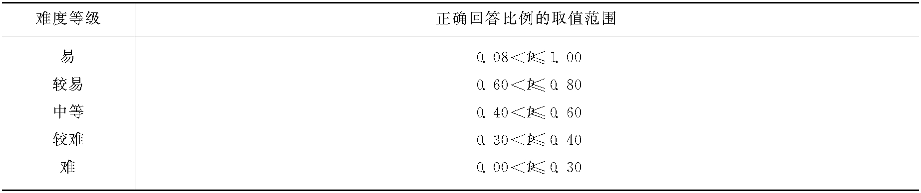 | 释义 | 职业技能鉴定试题难度等级职业技能鉴定用语。指内容专家按该职业整体人群在某一具体试题上的整体正确回答比例所作的等级评定值,一般用符号Dd表示。分为易、较易、中等、较难、难五个等级。在评定中应以该职业整体人群可正确回答该题的比例作为估计难度等级的基本依据。每个等级下具体对应的正确回答比例估计范围为: