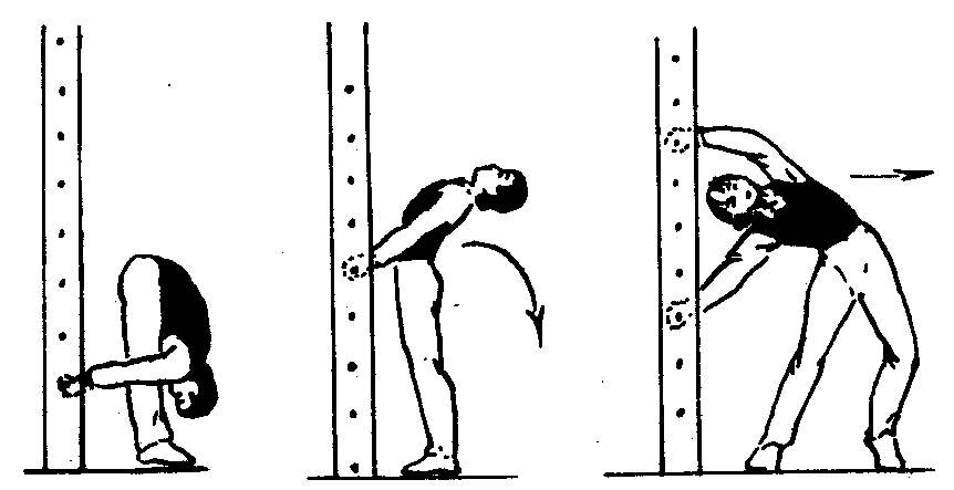 图2—3—13 肋木髋关节柔韧练习