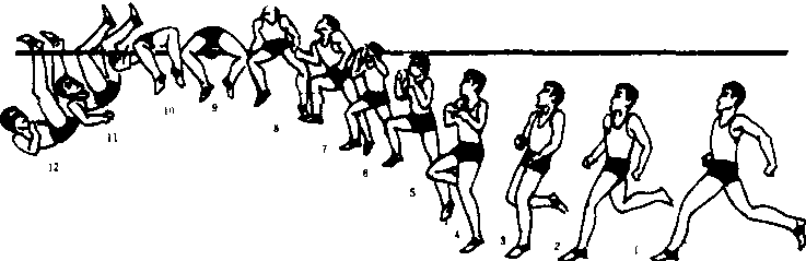 | 释义 | 背越式跳高跳高姿势之一。用先直线后弧线助跑方法,直线助跑与横杆成70°~90°角,最后3~4步是弧线跑,用离横杆远的一条腿做起跳腿,在横杆垂直面前60~80厘米处起跳,腾空后背越横杆。此式过杆时身体重心离杆较近,故效果较好。动作要领:起跳后在摆臂和摆腿动作配合下,身体绕纵轴旋转成背向横杆,并由垂直转为水平状态。❶抬头潜肩,头、肩先过杆。