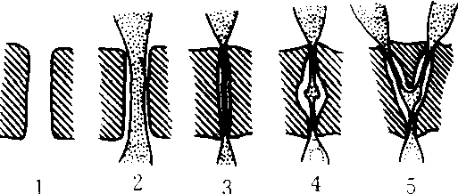 胞间连丝结构的几种类型 1.仅一条通道无内质网或链管 2. 内质网贯穿在二子细胞之间 3. 通道中内质网形成为链管 4.胞间连丝中部有小结节 5.网结的胞间连丝与链管被膨大的内质网连结在一起 |