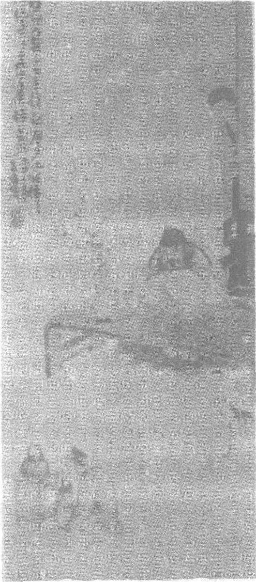 | 释义 | 胡锡珪除夕钟馗图轴清。胡锡珪。纸本设色。纵136厘米,横52厘米。北京故宫博物院藏。胡锡珪(公元1858—1890年),字三桥,号红菌馆主,苏州人。善画人物、花卉、仕女,笔法秀逸,设色雅淡。颇有新罗山人笔意。其戏曲人物画,似不经意,却能生趣横溢。吴昌硕称其“精细如发,而笔锋劲厉”,所谓“棉里藏针”。光绪中叶,在苏州与顾茶邨、陆廉夫、吴昌硕等极一时文酒之欢。惜多病早殇,传世作品较少。据沈括《补笔谈》记载,钟馗画始于吴道子,于端午、除夕贴于门楣,驱鬼辟邪。后经历代画家的创造,钟馗形象不断完善,题材亦见增多,精作屡出。此幅钟馗画构图新奇,立意深刻。画中钟馗略带醉意,笼袖伏于几上,纱帽低垂,须眉微张。几前一鹤独立,缩颈不前,一小童侧身对炉添炭煮酒。几上瓷瓶中腊梅独放。几后屏风半开,一女子身着水红衫裙探身注视,当为其小妹。三个人物均默然不语,气氛沉寂。画面景物简括,细节恰到好处,弥漫着除夕之夜萧寒的气氛。