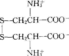 以二硫键连接起来的二分子半胱氨酸。简写成或(Cys)2。等电点为4.60,难溶于水。首先在胱氨酸尿症病人的尿中分离得到,是第一个被人们发现的氨基酸。在蛋白质的结构中,有维持和稳定其空间结构的作用。广泛存在于毛、发、骨、角等蛋白质中。