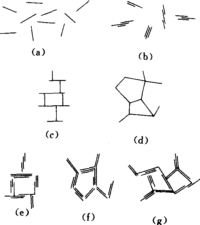 (a)“分散”和“散凝”的;(b)“聚集的”但是“散凝的”(面-面缔合,或平行的或定向的聚集);(c)“分散的”边-面絮凝的;(d)“分散的”边-边絮凝的;(e)“聚集的”边-面絮凝的;(f)“聚集的”边-边絮凝的;(g)“聚集的”边-面和边-边絮凝的