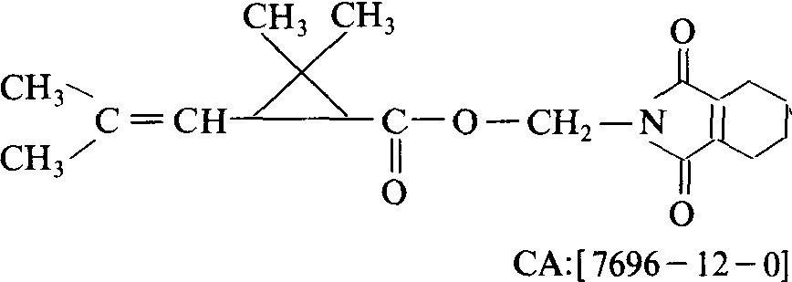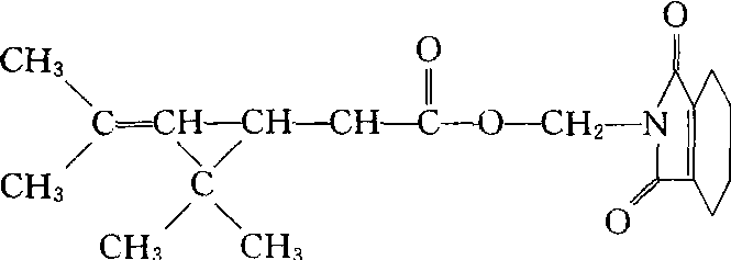 性能 原药为无色至浅黄褐色结晶固体,带有轻微的除虫菊酯味,熔点60~80℃;沸点185~190℃/13.3帕,密度d2020 1.108,30℃时蒸气压为9. 44×10-4帕。对光不稳定,弱酸性介质中较稳定,碱性介质中易分解,正常条件下贮存稳定,50℃贮存六个月未失去生物活性。难溶于水,易溶于丙酮、苯、甲苯、二甲苯等有机溶剂。对高等动物低毒,原药对大鼠急性经口LD50大于5000毫克/千克,对大鼠急性经皮LD50大于5000毫克/千克,对皮肤和眼睛无刺激作用。在试验剂量内对试验动物未发现致突变、致癌作用和繁殖影响。对大鼠喂以含有效成分大于1500毫克/千克的饲料半年,未发现不利的作用。对鱼类等水生生物、蜜蜂高毒,对鸟类低毒。属神经毒剂,对蚊、蝇等卫生害虫有快速击倒作用,但杀死能力较差,有复苏现象。对蜚蠊有驱赶作用,利用其可将蜚驱赶出来,再用其他杀虫剂的毒杀作用将其杀死。 应用 加工成乳油、液剂、水基气雾剂、油基气雾剂等剂型,因杀死害虫能力较差,通常利用其快速击倒作用,与杀虫能力较强、对人畜安全的其他卫生用杀虫剂混配用于防治蚊、蝇、臭虫、跳蚤、虱子、蜚蠊等卫生害虫,还可与其他杀虫剂混配用于防治仓贮害虫。日本住友化学工业株式会社还开发了生物活性更高的以(1R)-顺,反菊酸胺菊酯为主的产品,商品名称为Neo-Pynamin Forte。 胺菊酯tetramethrin又称phthalthrin、neopyra-min。主要起快速击倒作用的合成拟除虫菊酯杀虫剂。化学名称:3、4、5、6-四氢酞酰亚胺基甲基(R、S)顺、反-2,2-二甲基-3-(2-甲基-1-丙烯基)环丙烷羧酸酯。化学结构式如下。工业品为(±)-顺反、四种异构体的混合物,顺、反为2∶8。熔点65~80℃,沸点185~190℃/133.33 Pa,20℃时蒸气压为466.6×10-8 Pa、密度20℃时1.108。易溶于各种有机溶剂不溶于水,25℃时溶解度苯中500 g/kg、甲苯中40 g、乙醇中4.5g。大鼠经口LD50(♀)为2 000 mg/kg,(♂)为5 840 mg/kg。经皮LD50小鼠>15 000 mg/kg,皮下注射LD50 2 100 mg/kg。主要用于室内防治蚊、蝇、蟑螂等害虫。