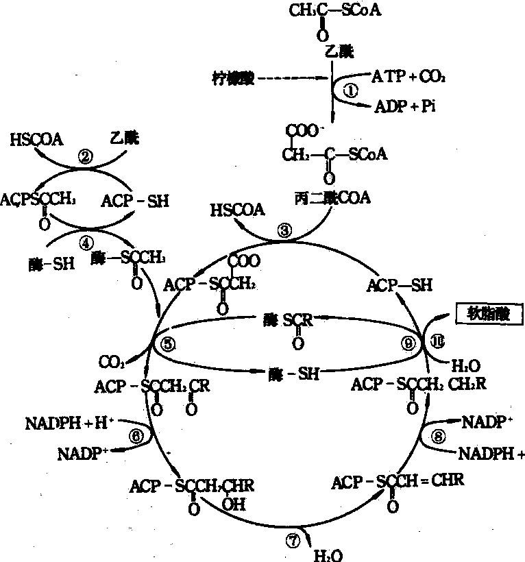 图 1 饱和脂酸合成图