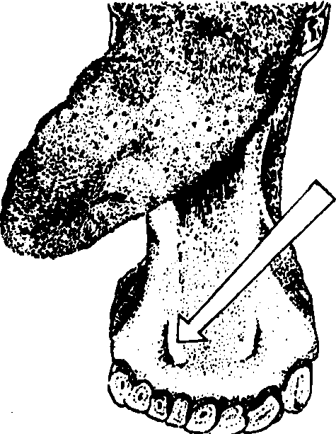 图1 马卧蚕 色诊 包括观察唇、舌、排齿和卧蚕 (舌下系带两旁一对肉阜, 左为金关,右称玉户(图1、2)的颜色和光泽。脉色论叙述了马四季正常口色、四季病理口色,色诊部位与五脏的应属关系, 以及从口津、口色、光泽判断疾病预后等。无论春夏秋冬, 凡马口色呈桃红色、鲜明、光泽、湿润者,都属正常; 呈现青、赤、黄、白、黑等颜色, 无光泽者, 均属病理表现: 色诊部位与五脏的应属关系是: 舌色应心, 唇色应脾, 金关应肝, 玉户应肺,排齿应肾, 口角应于三焦。从口津、口色、光泽判断疾病预后的要点是:无论何种口色, 凡湿润有光泽者, 预后较好,无光泽者, 预后不良。