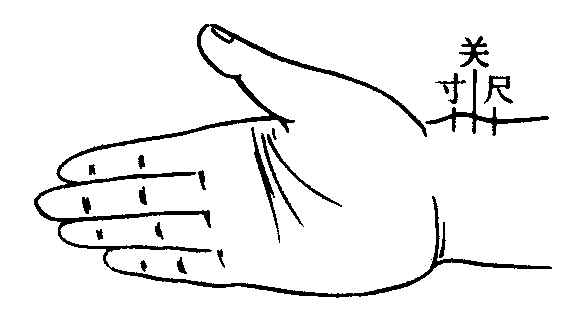| 释义 | 脉诊中医诊法之一。即触按脉搏以诊察疾病的方法,属于切诊的一种。诊脉又名切脉、按脉、持脉、把脉。古代诊脉的部位较多,主要有人迎(颈动脉)、趺阳(足背动脉)、寸口 (桡动脉近腕处)。还有一种遍诊法,在头、手、足部九处诊脉(见“三部九候”)。汉代以后,独取寸口的诊脉法占了主流。运用不同的力度和方法触按脉搏,体会脉动应指的形象(即“脉象”),可以测知体内气血变化的情况。脉诊在中医四诊中占有重要的地位,但仅凭脉诊不足以准确诊断疾病,还必须四诊合参。由于诊脉必须接触人体,在男女授受不亲的封建礼教束缚下,有的医生用悬丝诊脉法(即将丝线一头系于女患者手腕,另一头供医生切脉用)。实际上这种方法是荒诞的,全无实用价值。 脉诊又称切脉,候脉,持脉,按脉等,是医生用手指触按病人动脉的跳动,探查脉象,了解病情变化的一种方法。脉诊的部位,由古至今所用的有“遍诊法”、“三部诊法”、和“寸口诊法”3种,由于“寸口诊法”方便易行,所以今日诊脉,大都采用“寸口诊法”。寸口又分寸、关、尺3部位。正对腕后高骨(桡骨茎突)为关部,关部之前为寸部,关部之后为尺部(见图1—11)。有的人脉不见于寸口部,而以尺部斜向“虎口”的名为“斜正脉”,也见于腕部背侧的名为“反关脉”。这都是桡动脉位置异常所致,但不属病脉范畴。脉象的形成和脏腑气血的功能密切相关,因而疾病的病性、病位、邪正盛衰都可以通过脉象的不同变化而反映出来,所以,通过观察脉象的变化就能达到诊断疾病的目的。正常的脉象,称为平脉,表现是一息四至五至(相当于70~80次/分),不浮不沉,不疾不徐,往来均匀,和缓有力,节律一致,尺脉沉取按之有力,是气血调和,身体健康的征象。