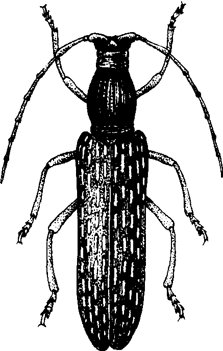 | 释义 | 脊胸天牛mango long-horned beetle幼虫蛀害杧果等树干的甲虫。学名Rhytidodera bow-ringii White。鞘翅目,天牛科。分布于缅甸、印度、印度尼西亚(爪哇),中国广东、广西、福建、云南、四川等省区亦有分布。是杧果的主要害虫。寄主植物有杧果、腰果、橄榄、厚皮树、朴树等。成虫体长25~35毫米,栗色至栗黑色。雄虫触角约为体长的3/4,雌虫触角较短。前胸背板前、后端具横脊,中间具有19条纵脊。鞘翅除具灰白色短毛外,尚有5条纵行的金黄色长斑纹(见图)。卵椭圆,色乳白。末龄幼虫体长约77毫米,乳黄色,具褐色短毛。前胸背板后方具乳白色凸形盾状隆起,后方两侧各具纵线,第一至七腹节具步泡突,背面的步泡突由两条横沟和两条纵沟以及沟两侧的瘤突组成。