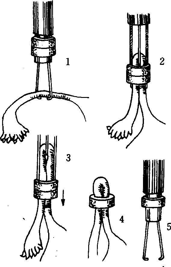 | 释义 | 腹腔镜绝育术是通过腹腔镜进入腹腔施行输卵管阻断术,腹腔镜技术是近30年随着科学技术的迅速发展,而建立的现代高新技术,我国于70年代末由美国引入腹腔镜技术,在脐部做一0.8厘米长的小切口,将腹腔镜放入腹腔,利用人工气腹(向腹腔内注入CO2气体3升左右),特殊体位(头低臀高位)和冷光源(用光导纤维将光源自体外传到腹腔内)照明这几项措施,可以清楚地看见盆腔内情况,特别是子宫输卵管、卵巢、子宫韧带、子宫、直肠陷凹等生殖器和邻近器官清晰可见,一目了然。在镜下用特殊的装置将输卵管阻断。这种手术创伤更小,时间更短,在局麻下进行,术后亦不需卧床,可在门诊进行,恢复很快。只是仪器设备需由国外进口,比较昂贵,影响大面积应用。腹腔镜绝育方法有电凝、硅橡胶环套扎法和卵管夹上夹法等(见图4.3-4)。电凝法因破坏卵管组织范围较大,并有可能并发其他腹腔内脏器电灼伤,现在已很少用,用得较多的是硅橡胶环套扎法和卵管夹上夹法;硅橡胶环套扎法见示意图4.3-4;硅橡胶外环径3.5毫米,内径1毫米,有弹性撑大后将卵管峡部双折套入环内,环缩复将输卵管紧紧扎住,作用与线扎双折输卵管相似。此法失败率3.9%而且2.6%为宫外孕。输卵管夹有多种,较好的是Filshie钛硅胶夹,它长1.27厘米,宽4毫米,外层是金属钛,内敷一层硅橡胶,对不同生理时期的粗的或细的输卵管均适用,失败率约0.2%,上夹技术比环套扎简单也易掌握,而且安全,不易造成输卵管系膜损伤、出血或输卵管断裂等并发症。腹腔镜绝育禁忌症:除小切口绝育禁忌症外,再加腹腔镜禁忌即有心血管疾患,肺呼吸功能差、横隔疝,肠粘连或有出血倾向者。施术时间:只能在非孕期月经后3—8天或早孕人流术后,足月产和中期引产后因子宫太大是腹腔镜禁忌,故不能做。