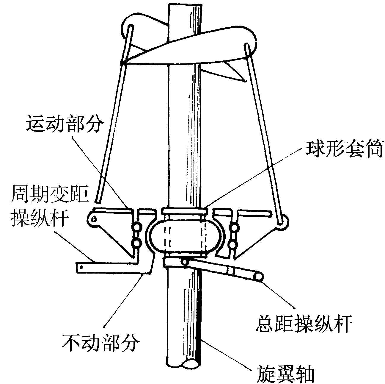 | 释义 | 自动倾斜器swash plate直升机改变旋翼倾斜方向和桨叶倾角的专用装置。通过它实现对直升机飞行状态的操纵。它经由球形套筒装在旋翼轴上,套筒和总距操纵杆相连并可在旋翼轴上下滑动。套筒的球面上套有一个不旋转的环,称为内环,和周期变距操纵杆相连。内环可沿球形套筒向任一方向倾斜,外环是旋转部分,通过滚动轴承绕内环旋转,同时通过拉杆与桨叶连接并一同运动。操纵总距操纵杆时,球形套筒带动整个自动倾斜器向上或向下,使各个叶片的桨距同时变大或变小,使直升机上升或下降。推动周期变距操纵杆时,使内环绕套筒倾斜,带动外环倾斜,拉动桨叶周期性地改变桨距,使旋翼旋转平面倾斜,从而使直升机沿着旋翼拉力水平分量的方向飞行,达到控制直升机飞行方向的目的。