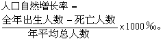 一定时期内人口自然增长数(出生人数减死亡人数)与人口总数之比。通常以一年为期计算,用千分数表示。计算公式为: