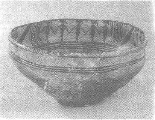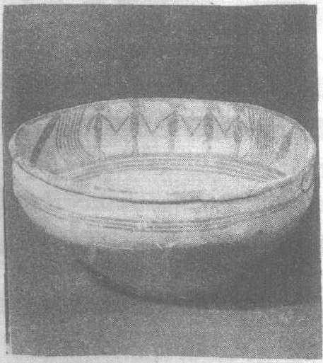 舞蹈纹彩陶盆Wu daowen caitaopen马家窑文化的器物,出土于青海省大通县上孙家寨。在盆的内壁绘有一圈舞蹈图,共三组,每组五人,计十五人。画中舞蹈者,手拉手,面向一致,头侧各有发辫,下身体侧均有斜向左方的饰物。这组舞蹈可能表现的是原始人在狩猎之余表演狩猎舞的生活场面。人物形象虽稚拙,但较写实,虽无细部刻画,只是把握了大的动态,却产生出一种剪影的效果。这组舞蹈纹表现了群体活动的形象在新石器时代的装饰性绘画中还是极少见的,堪称马家窑文化的杰出作品。