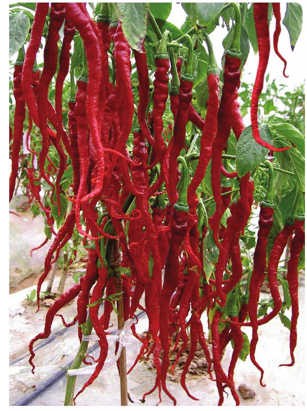 | 释义 | 航椒3号、4号、7号、8号由甘肃省航天育种工程技术研究中心培育的辣椒品种。其选育方法集航天技术、生物技术和农业育种技术于一体,综合应用了日光温室加代选育、病圃选择等技术,对搭载 过神舟三号飞船的天水两个地方品种(2002年3月25日送入太空,2002年4月1日返回地面)的优良变异植株采用单株—混合选择法,自交选育多代后,选育出优良稳定自交系再配制的杂种一代。其成果在航天育种领域达到国内同类研究领先水平。航椒3号为长羊角形,极早熟,果长29厘米左右,辣味强,品质优良,耐低温、弱光、高湿及高温干旱,适应性广,亩产5000公斤左右。保护地、露地栽培均可,尤其适宜保护地种植。在北京、甘肃、浙江、成都等省市已大面积推广种植。航椒4号中早熟,果实线形,青熟果绿色,红熟果深红色,果面皱,果长30~35厘米,辣味强,鲜、干兼用,以加工为主,鲜干椒商品性好,亩产鲜椒4000公斤以上,亩产干椒500公斤以上。在甘肃、新疆、陕西、宁夏、贵州、内蒙古、辽宁、山西等省区已大面积推广种植。航椒7号长势强健,果实线形,青熟果深绿色,干椒紫红色,皱纹细密,果长18厘米左右,辣味强,风味佳,适宜制干。亩产5000公斤左右。在甘肃、陕西、宁夏、山西、内蒙古、四川等省区已大面积推广种植。航椒8号品质好,果面皱,有光泽;青熟果绿色,果长24厘米左右,果粗3厘米左右;辣味强,风味佳,亩产5000公斤左右。在甘肃、陕西、山西、北京、浙江等省市已大面积推广种植。