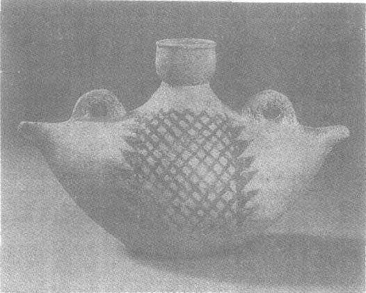 | 释义 | 船形彩陶壶新石器时代仰韶文化半坡类型。高15.6厘米,长24.8厘米。陕西省宝鸡市北首岭出土。北京中国历史博物馆藏。此壶为仰韶文化的一件重要器物。其形为:杯状口、细颈、平肩,双肩各有一耳。壶体呈中间圆鼓,两端尖翘的菱角状,恰似一只小船。腹部两面饰黑彩斜方格纹,宛如张开的鱼网。据专家推断,在此种器形上绘网状纹并非偶然,而是制作者以艺术手法表现了他们的生产和生活动态。人们观赏此物时,可以想象到先人驾轻舟,张网捕鱼的情景。仰韶文化见“小口尖底红陶瓶”条目。